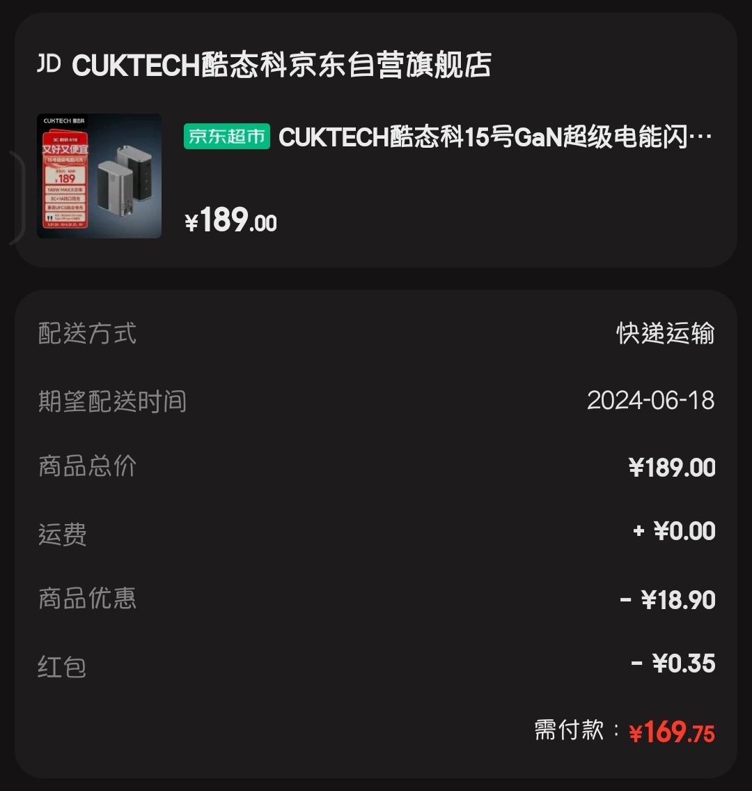 推 Terrykho: 綠聯65W 2C1A RMB 98 180.176.78.238 06/18 19:56