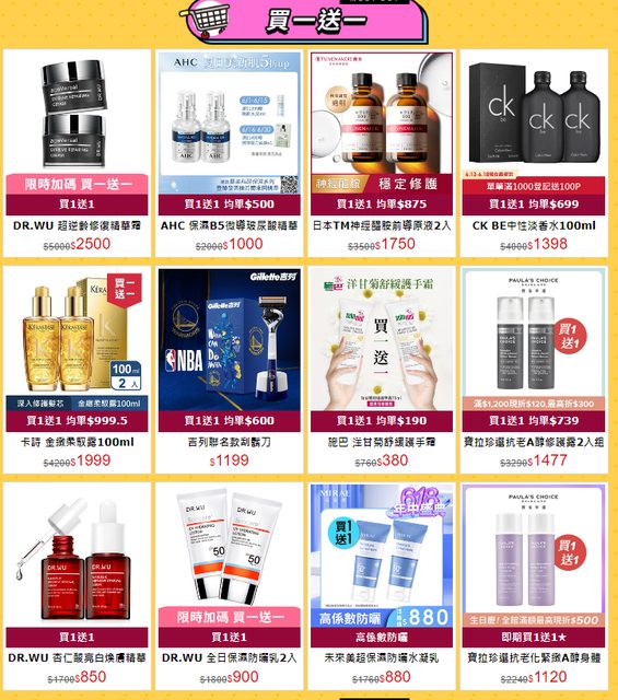 開架保養有買一送一可買,基本上都很划算(推Dr.Wu,買一送一真的省)
