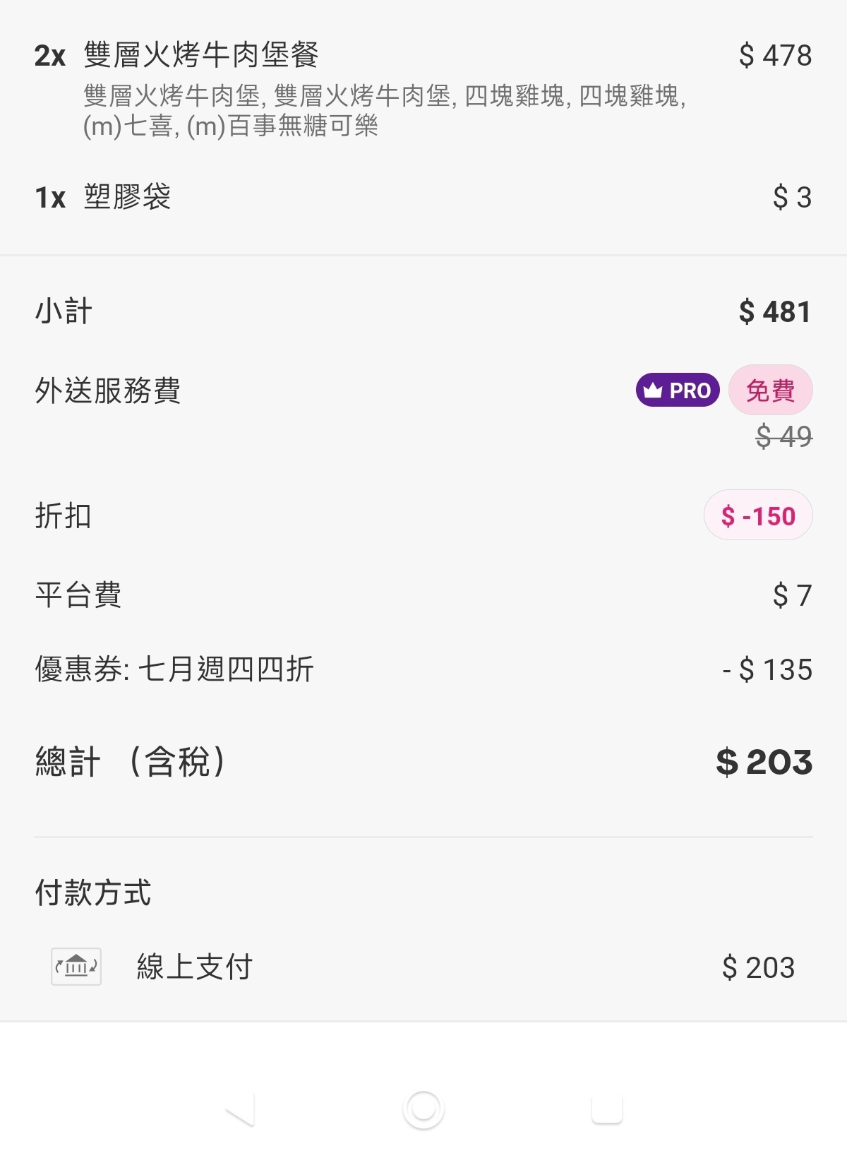 推 color345: 我沒有pro,買三份辣華堡餐+塑袋,250還可 101.12.93.149 07/04 19:36