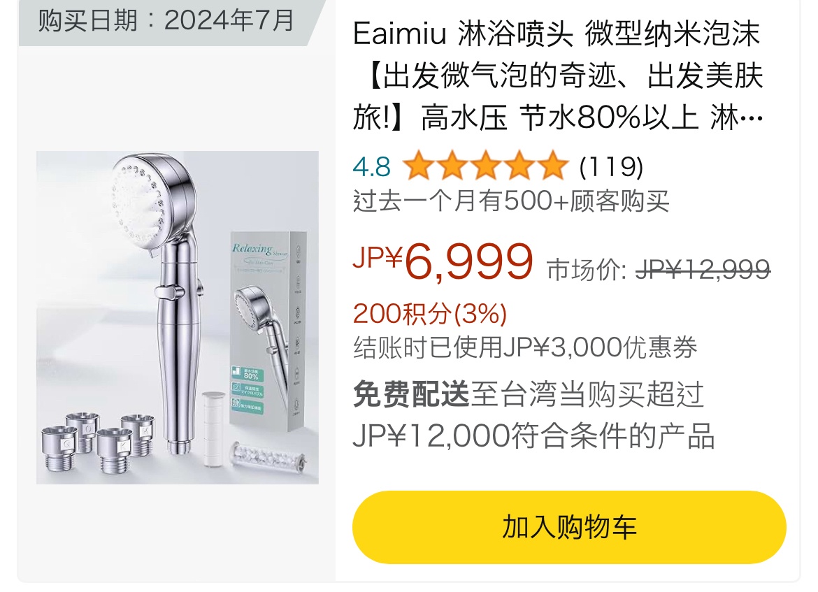 推 weldom0830: 我剛買2支蓮蓬頭10098日幣附近 182.233.24.41 07/09 20:10