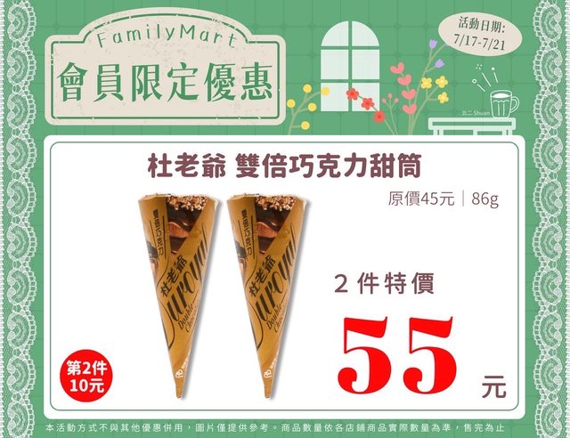 推 ycnaa: 甜筒萊爾富有買二送二 1.34.79.96 07/15 20:57