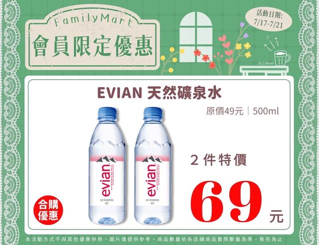 推 kkmansky: evian 很好喝耶! 118.232.28.92 07/15 22:42
