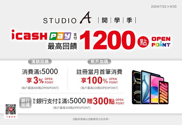 標題[情報] studio A X icashpay開學季滿5000回饋3%