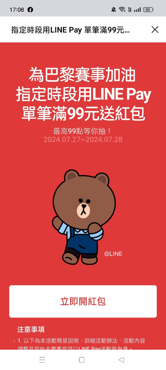 推 Anadyomene: 昨天消費沒有拿到紅包或許是已經額滿 36.224.101.226 07/28 13:10