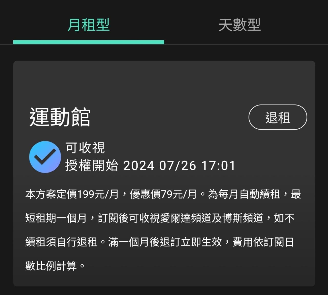 推 alag: 我只有電視館199的,運動館要怎樣才有2個月 39.1.12.240 07/29 12:35