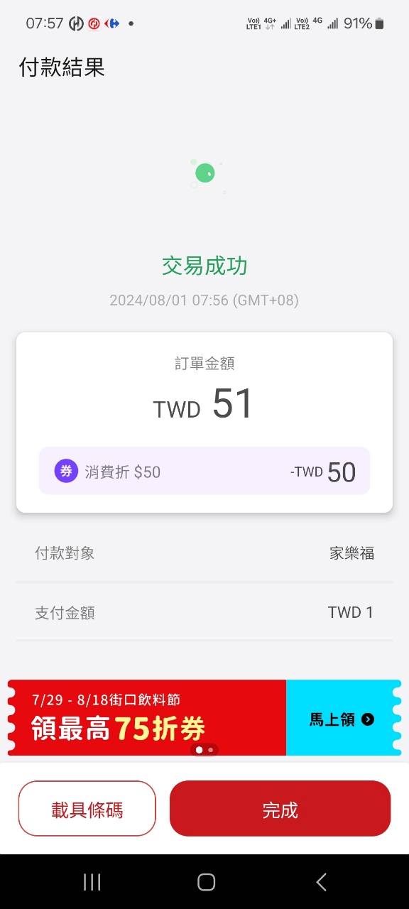 推 mcy0326: 回CCU大:有,我也是,街口顯示支付成功 140.113.13.234 08/01 09:18