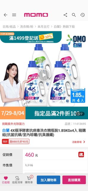 標題[情報] momo白蘭4x洗衣精4罐$460