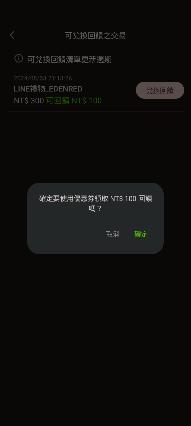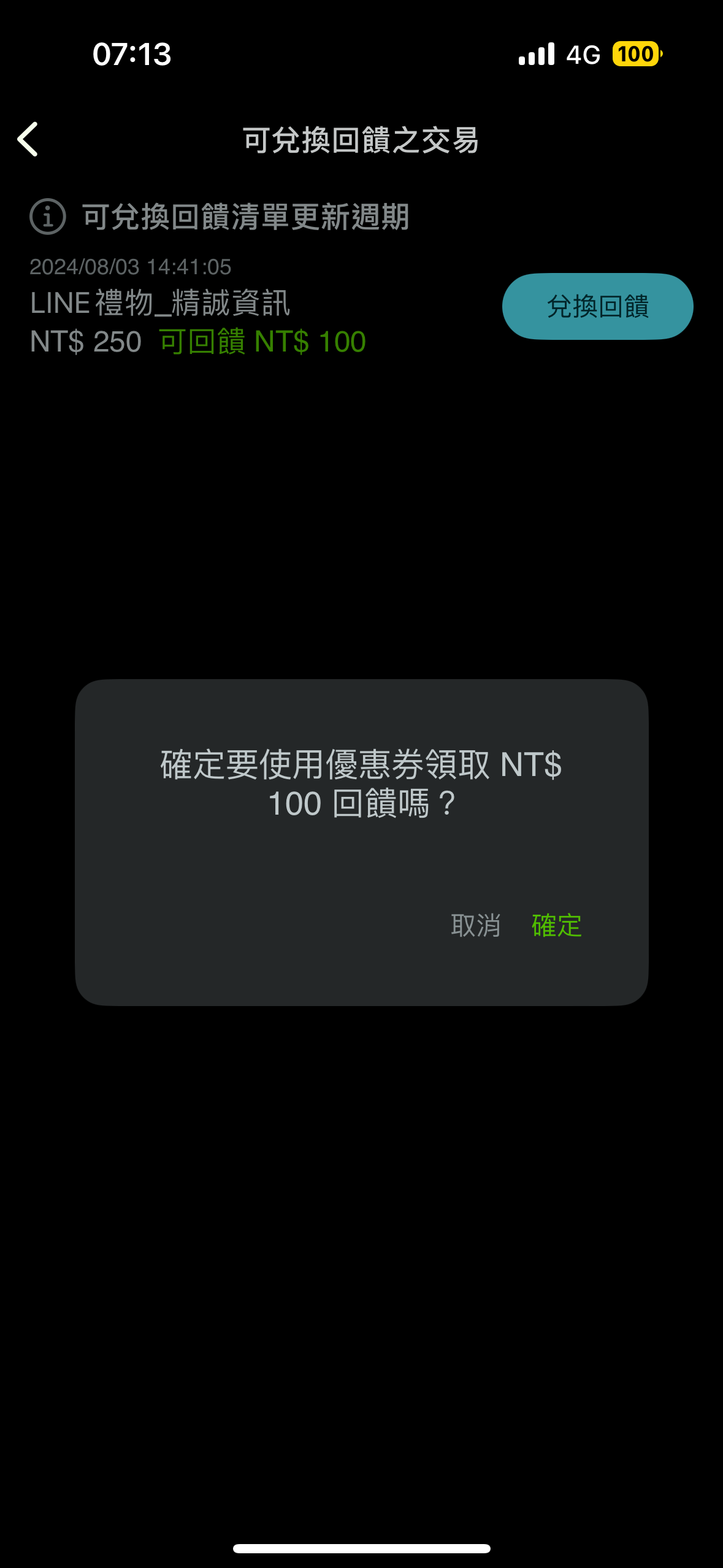 → xufuu: 優惠券兌換等於是回饋100元現金給 36.238.4.205 08/04 09:48