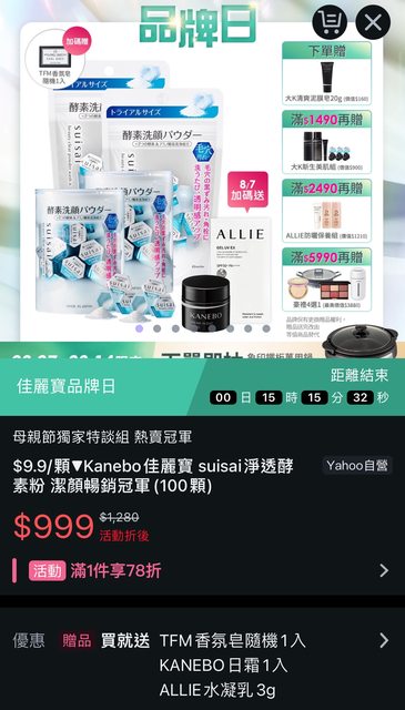 標題[情報] 佳麗寶 suisai酵素洗顏$9.9/顆