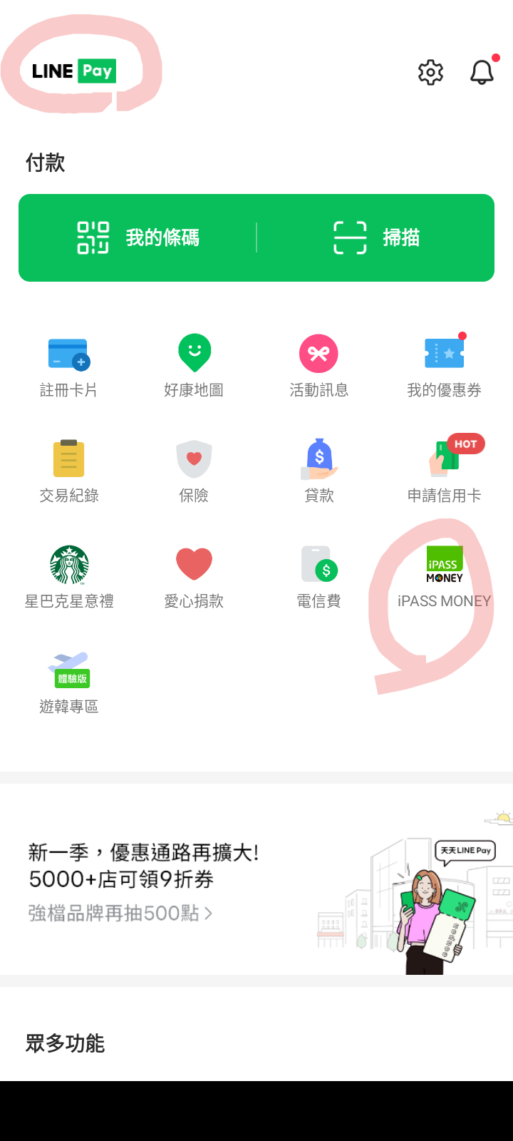 推 TaiwanPriest: 在line本體的line pay裡ipass money 111.125.132.64 08/11 15:58