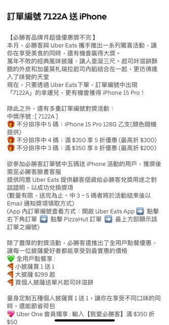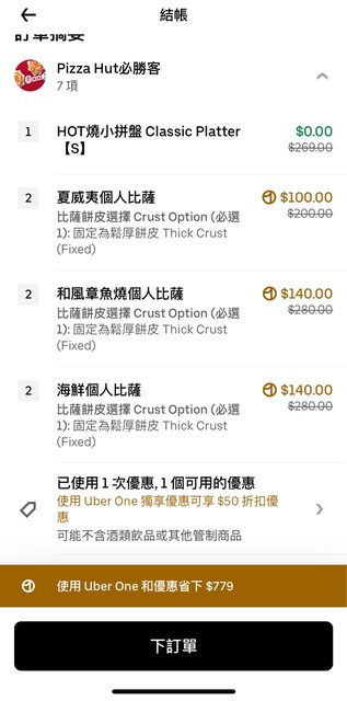推 TZUYIC: 我愛必勝客 這個序號也是Uber One獨享優惠101.137.120.167 08/10 13:03