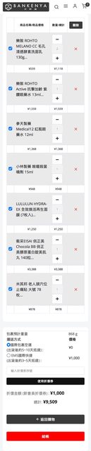 加了幾樣進購物車,是日幣結帳