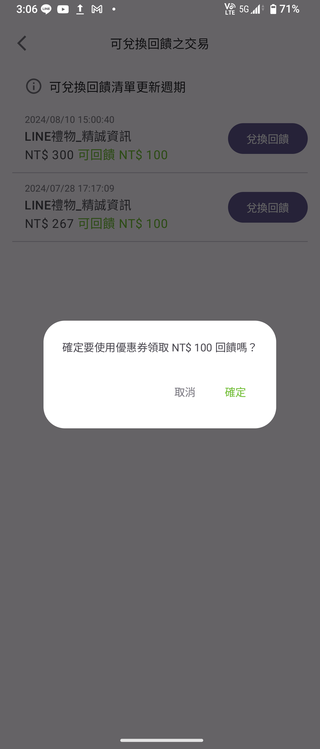 → TZUYIC: 的消費,可回饋NT$100無誤。101.137.239.231 08/20 16:12