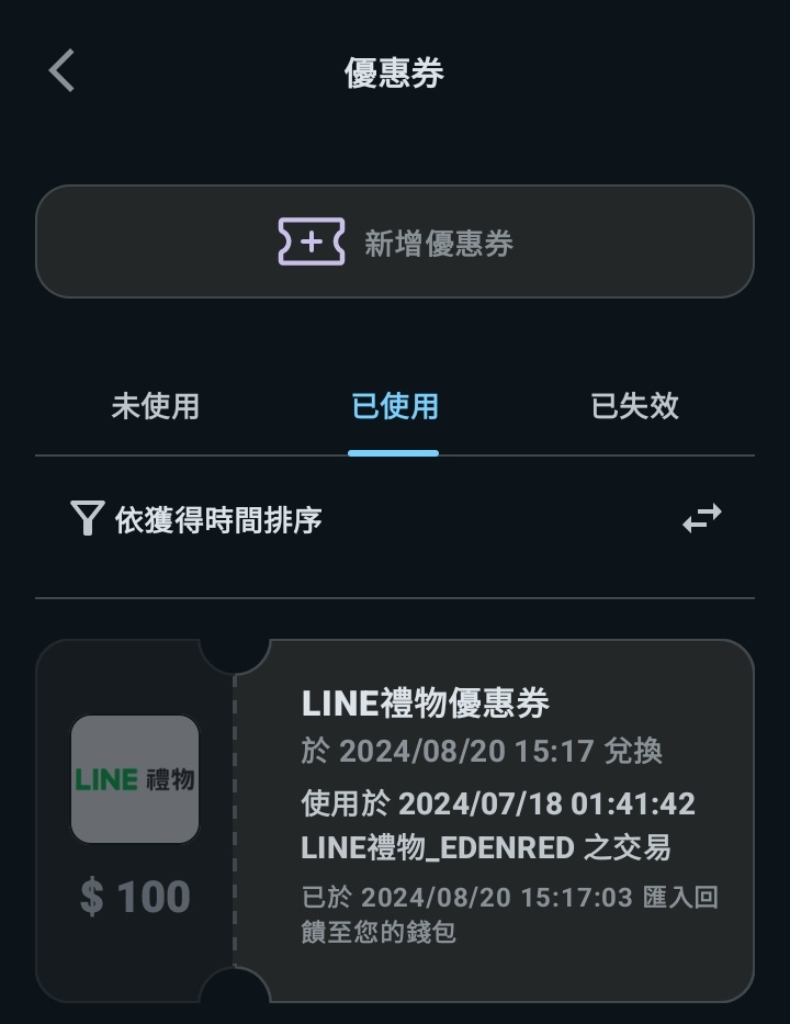 推 namimo: 記得去app按領取,會入帳100,不用再消費 1.200.129.166 08/20 15:54