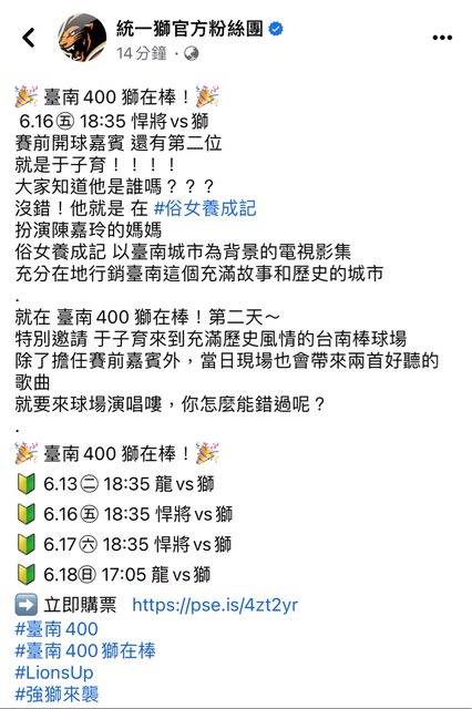 標題[情報] 6/16開球嘉賓:吳以涵、于子育