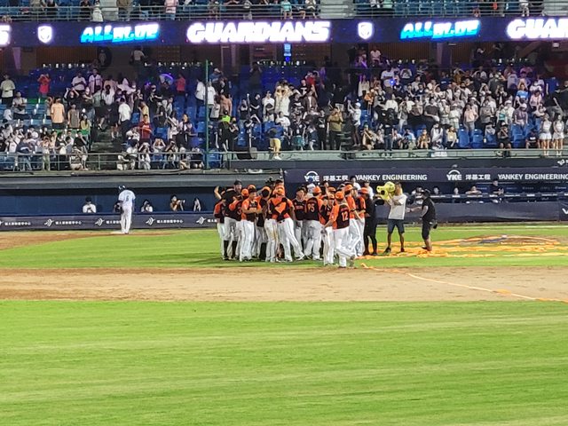 與此同時 大家忙著場復 給讚 如果不是封王戰 其實當天的比賽內容蠻平順的 Sanchez八局只失一分 也只有找瓜最後半局派牛棚守成的時候才有多掉分數 攻勢部份 扣掉二局上失敗的強迫取分之外 從三局蘇爸的陽春砲開始 幾乎局局都有得點圈 甚至是滿壘的打擊機會 佐以勝騎士的好投 九局上靠著重羽的三壘安打 以及重廷的內野安打 多拿下了保險的分數 也讓我們最後得以拋下睽違11年的上半季冠軍彩帶 不過這場比賽基本上就是我喵上半季的縮影 靠著強力的洋投 打線正常的發揮 但是牛棚的戰力仍舊是隱憂 希望拿下上半季 會有多一點空間來做調整 --