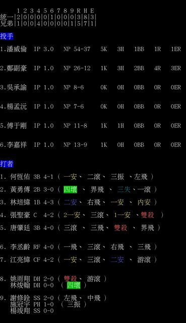 6.李嘉祥 IP 1.0 NP 13-9 1K 0H 0BB 0R 0ER