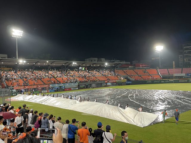 五局裁判沒先叫停.讓力量人打了一支雨水跟球都分不清楚的二壘安打