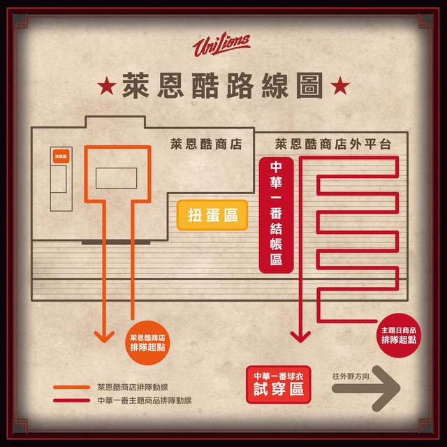 為避免久候,活動三日「中華一番!」聯名商品將移至萊恩酷門市外木板區