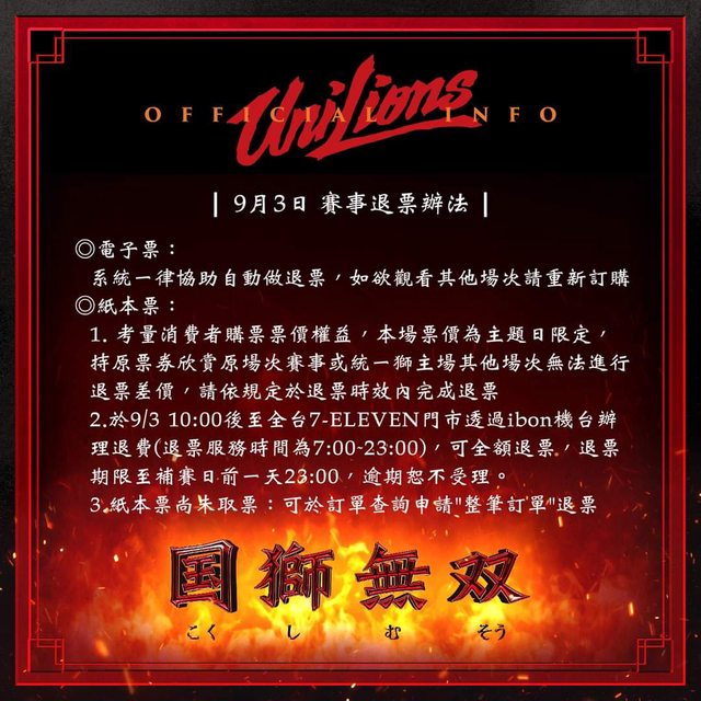 推 tackcalb: 上一場統一獅延賽延到禮拜一 不懂電子票為什麼要退票 09/02 23:46