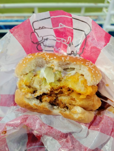 三局下 又是鬼腳 一樣抓到甜球 打得很扎實上到壘包