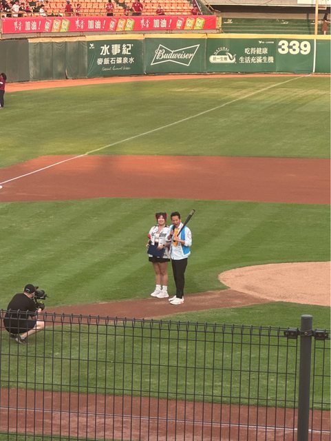 雖然被炸得很慘,還是很開心和最愛的統一獅一起