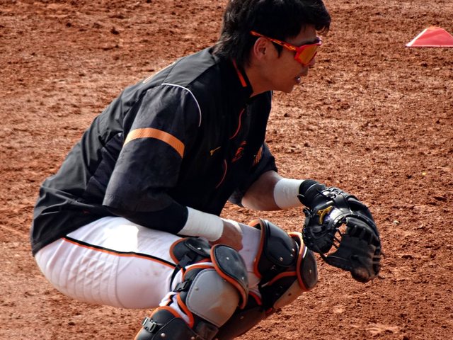 可惜捕手練習棚有點遠,沒辦法像去年春訓近距離觀看
