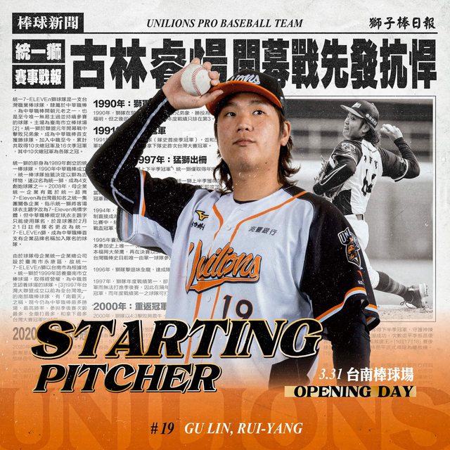 標題[情報] 統一獅3/31主場開幕戰先發投手:古林睿煬