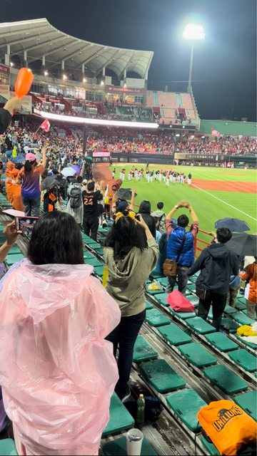 還好雨勢不算大,可以稍微淋雨看球的那種