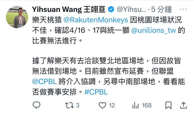 → BJshow: 那個延賽本來就是擺爛 台灣球場那麼多 04/08 23:14