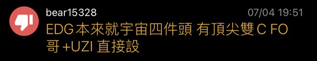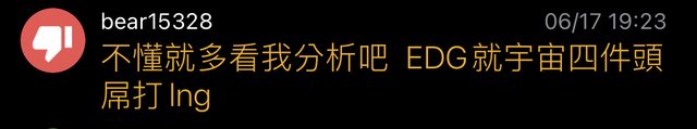 sheep531531 : 熊哥瞎口也不是一兩天了 難得口到JDG一次給他點面子 07/04 22:41