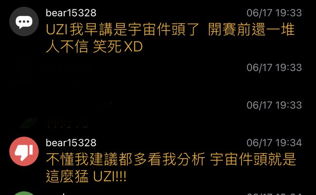 aislenway : uzi就跟faker一樣 會輸不會是UZI的問題 是隊友問題 07/04 23:25
