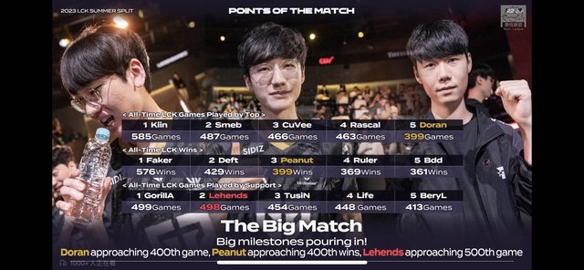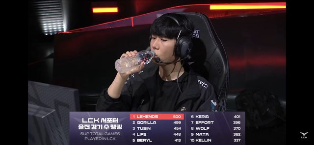 輔助的Lehends也於今日達成LCK史上第一位500場出賽輔助的成就