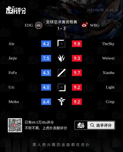 標題[閒聊] EDG vs WBG 虎撲賽後評分表