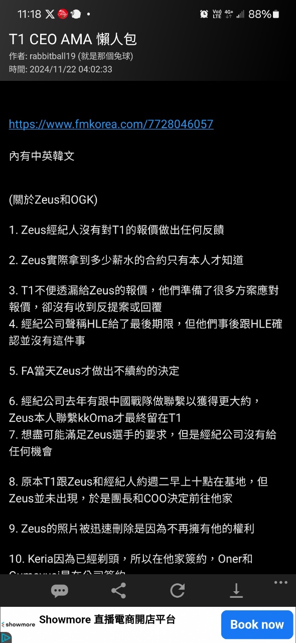 → likeyouuu : 想要走直接說 或是 讓T1知道韓華報價讓T1可以匹配 11/22 11:07