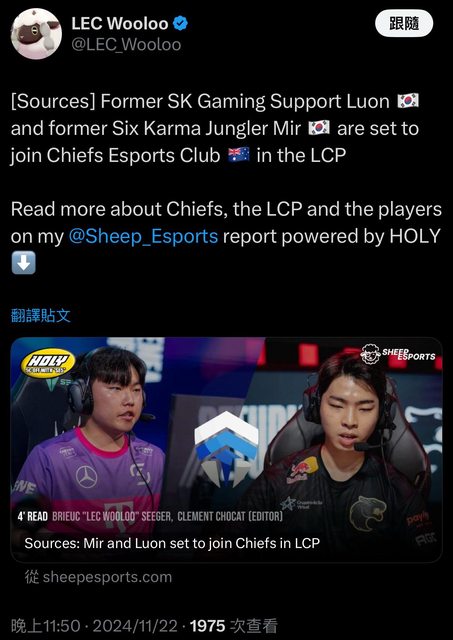 標題[閒聊] 乳摸:Luon與Mir加入CHF