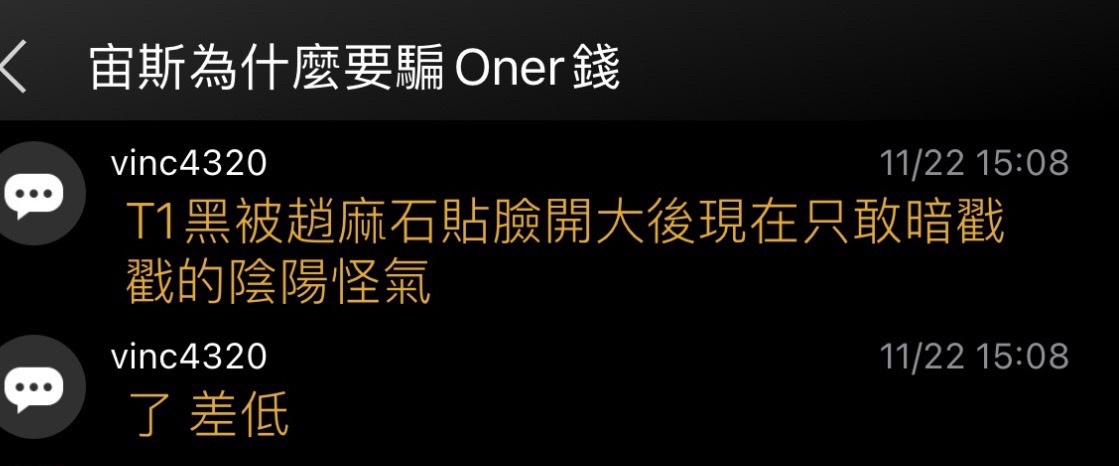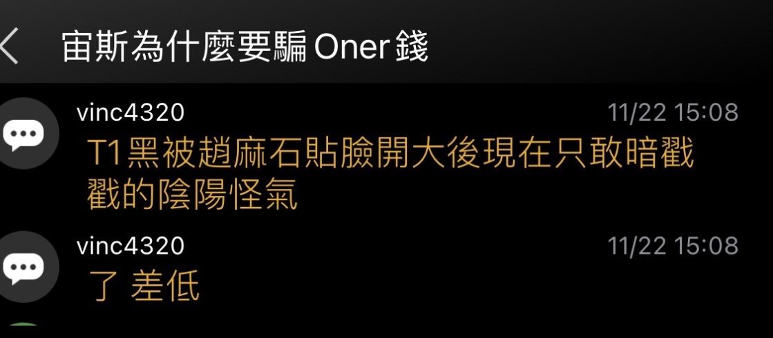 推 as6633208 : 恐怖情人T1,不接受鳥價壓薪資,就抹黑毀了你 03/22 20:15