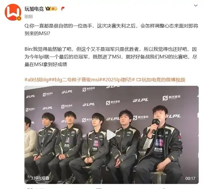 上次Bin哥在勝者組決賽前在微博發一句