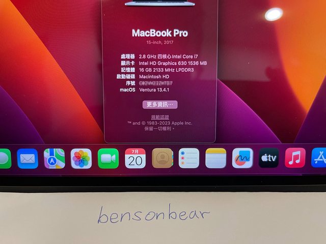 標題[販售] 中壢 二手 MacBook Pro 2017 15”/ i7/