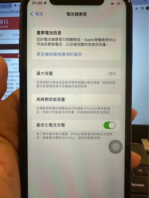 電池健康78%建議更換電池