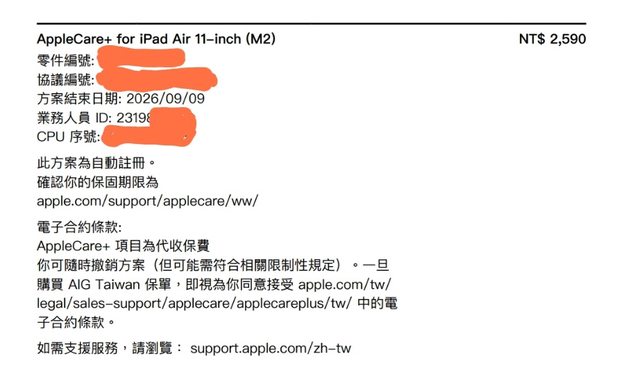 有額外加購apple care+保固服務
