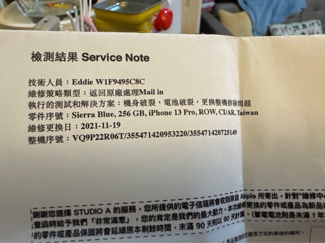 路上被壓爛,回apple store 換全新機,會一併附上單據
