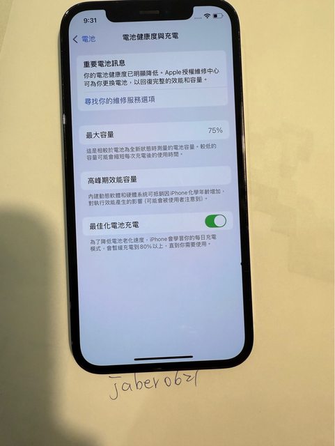 電池健康度75%,螢幕中間右方有個黑點和平共處兩三年了,貼保護貼幾乎看不到