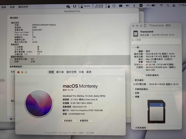 2 MacBook Pro 13 2015: 機況維持近全新,有螢幕膜,注音鍵盤,電池循環101