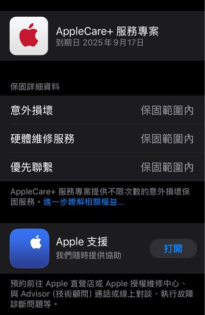 保固日期:2025/9/17 applecare+可以轉移