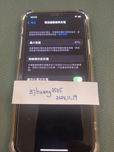 電池健康度:87%功能正常 非日常用機,後期專用來拍照拍影片而已,少用。
