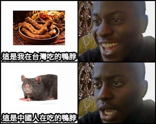 推 sas1942 : 這則讓我不知為何聯想到,中國把老鼠頭說成鴨脖子 06/07 00:09