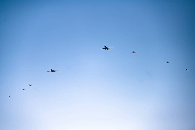 起飛了兩架B1B轟炸機和六架戰鬥機