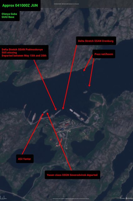 然而過去幾個月以來衛星影像在Olenya Guba潛艇基地陸續觀察到相似的防禦設施,包含