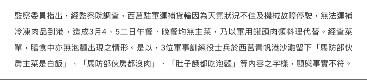 推 diyaworld : 軍中自己的調查報告我當然不信,但這是監委的報告 06/21 02:17